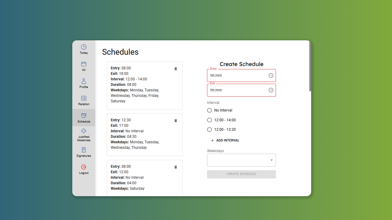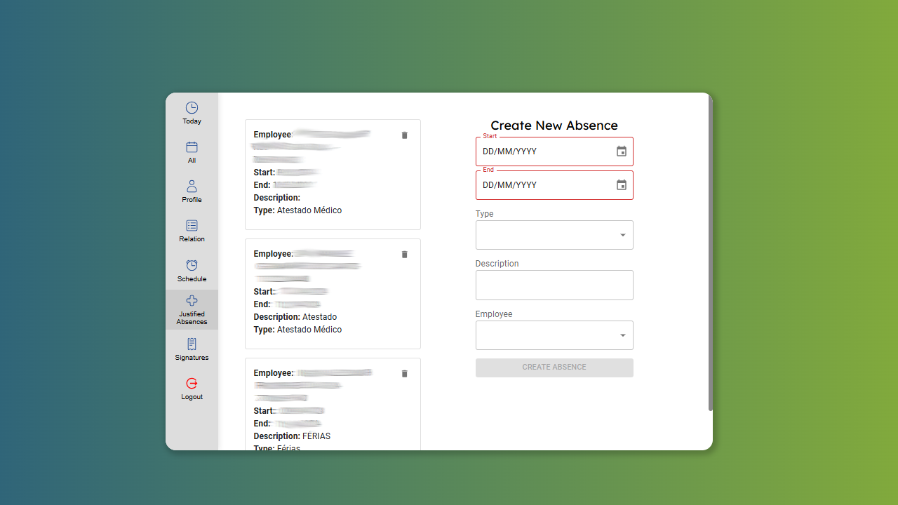 Allows batch entries of absences, point correction with justification record and easy monitoring of all those present and absent by day or period.