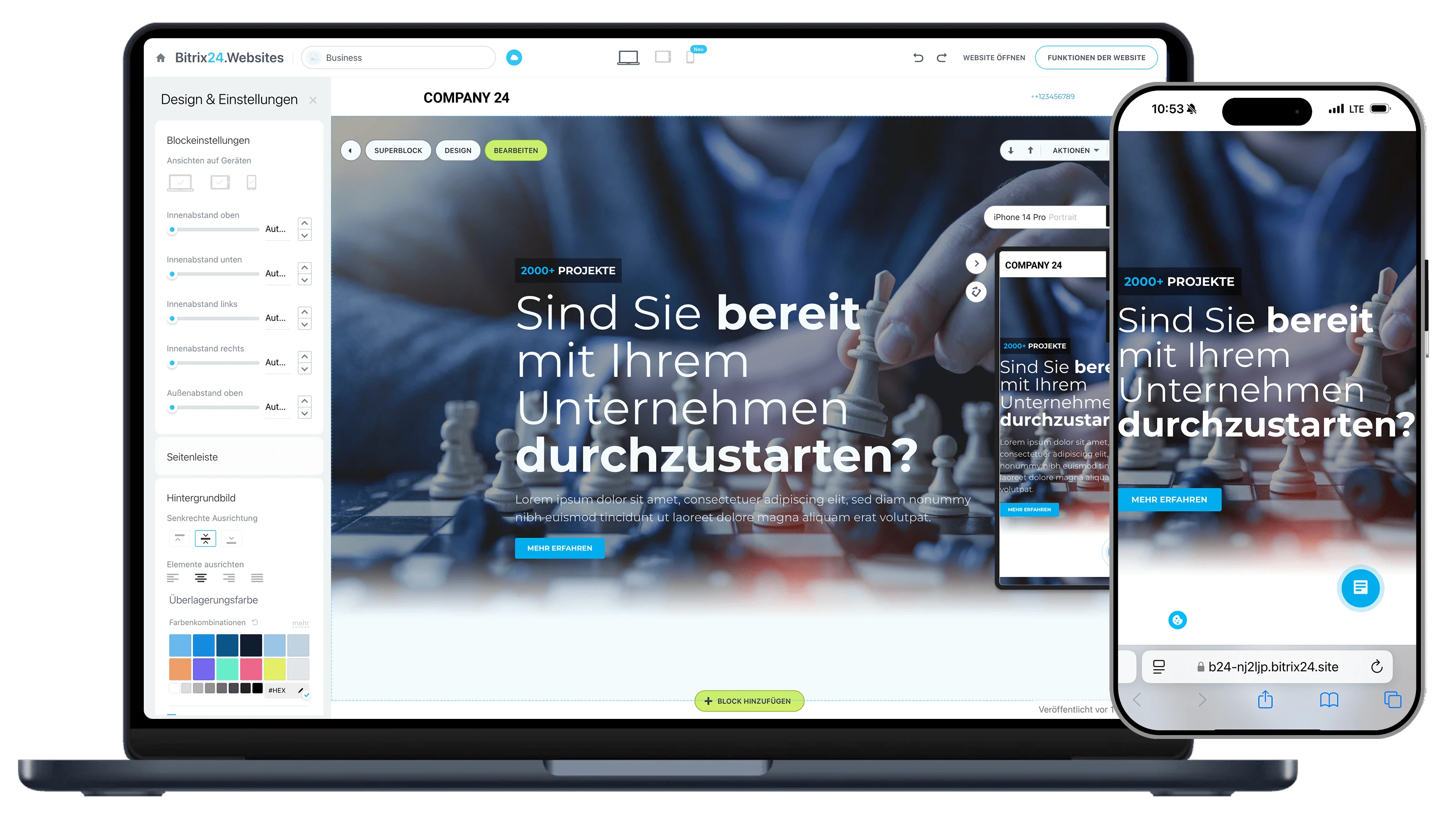 Wir realisieren in unserer Bitrix Umgebung die gesamte Projektplanung, angefangen von Terminvereinbarungen mit den Kunden, Kommunikation zwischen uns und dem Kunden - fast wie bei WhatsApp - aber eben DSGVO-konform, alle Baupläne sowie weitere Unterlagen zum Projekt legen wir in einem separaten Projektordner ab.