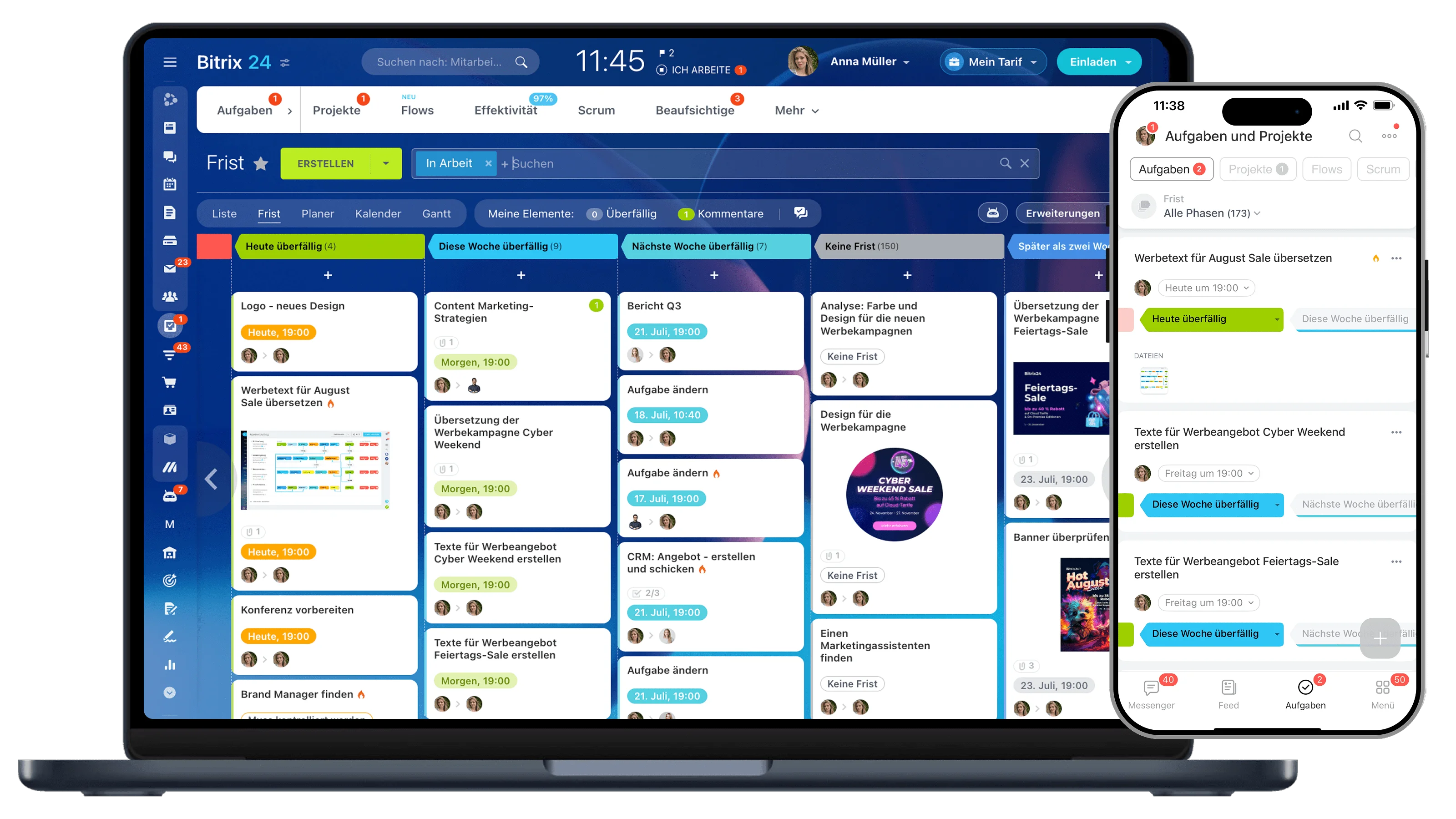 Bitrix24 bietet ein vollständiges Paket an Tools, das jedes Unternehmen für die Remote-Arbeit benötigt – alles zu einem fixierten Preis.