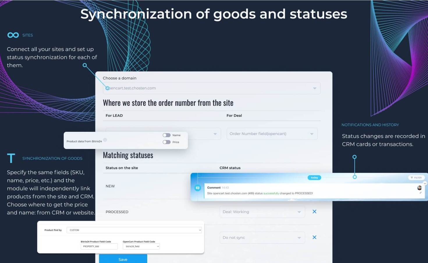 - Linking products from the website and Bitrix24 for accurate inventory accounting;