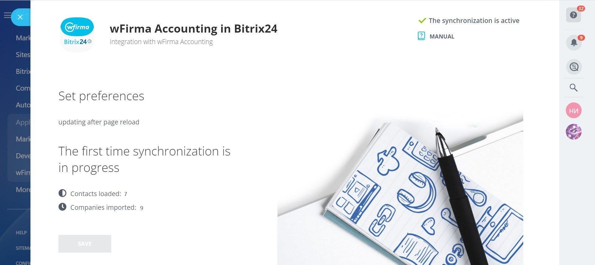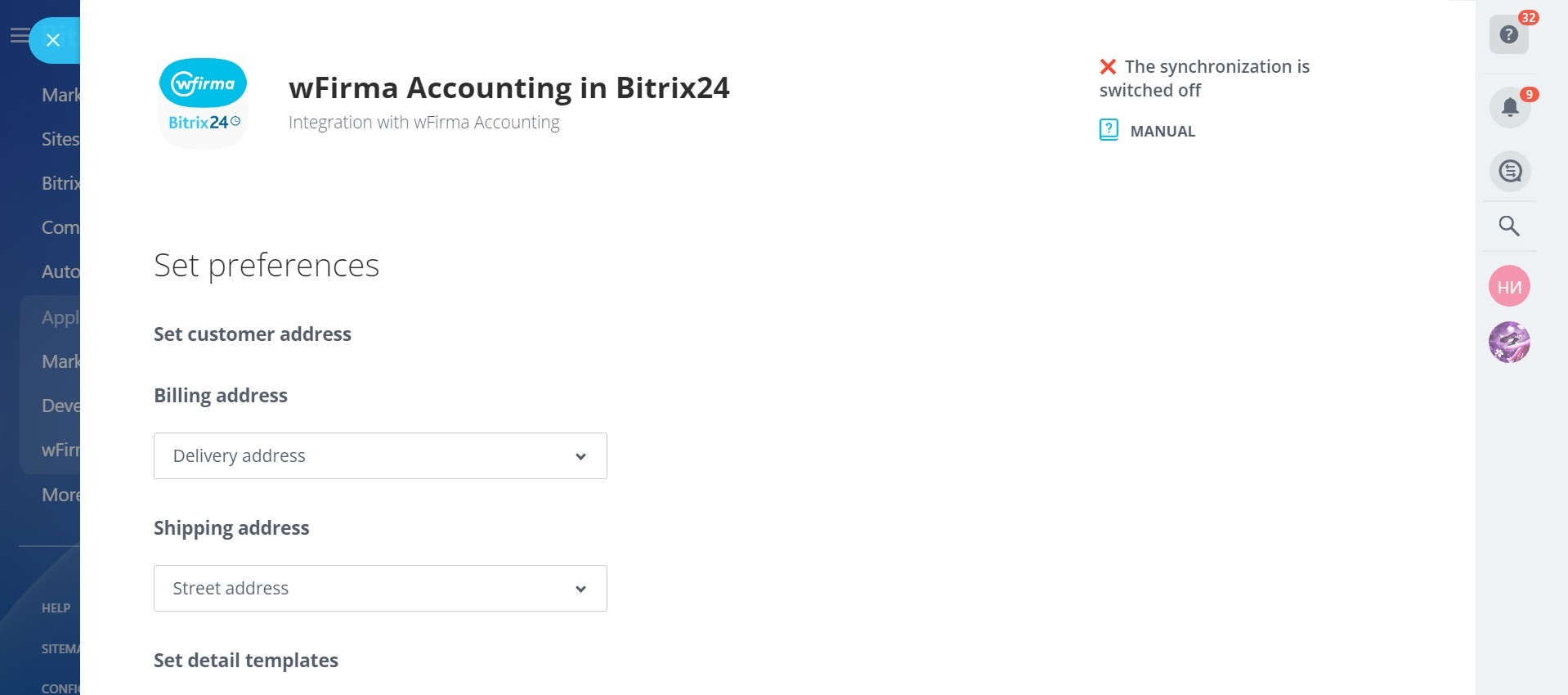 If company and contact details or invoices are modified in wFirma, the app will automatically implement changes in Bitrix24. All changes in Bitrix24 company and contact details will be automatically synchronized with wFirma.