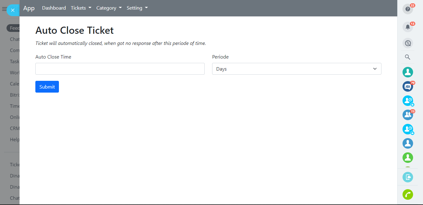 Helpdesk application is ticketing platform suitable for managing internal case. User can create ticket and responded by agent assigned to the ticket category. Agent can respond, solve, or delegate the ticket to another departement/user. Solved ticket will be automatically closed within certain period. Ticket can be reopened if necessary