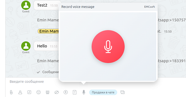 Support in one window — an agent handles WhatsApp dialogs in Open Lines; records voice and sends translations when needed. A manager connects as an observer for quality control.