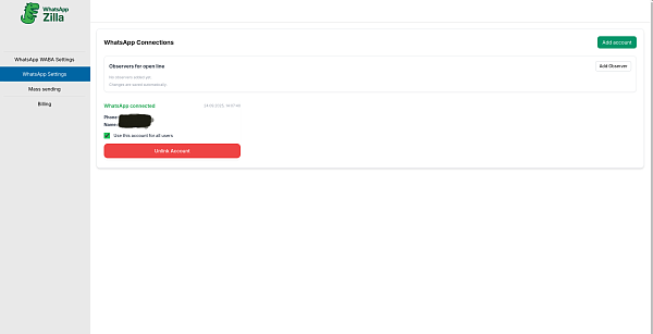 WhatsApp Zilla connects WhatsApp to Bitrix24 and consolidates communications into Open Lines and CRM. Two connection modes are supported: personal WhatsApp (via QR) and a business account via Twilio (WhatsApp Business API). Plus: bulk campaigns, voice message recording, a built-in translator, and an observers mode for joining a line.