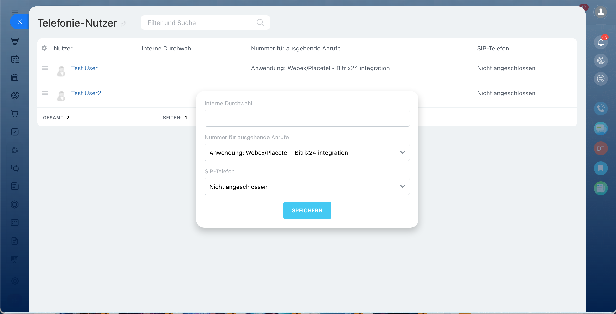 Speichern und greifen Sie auf Anrufaufzeichnungen direkt in Bitrix24 zu (falls in Ihrem Webex oder Placetel aktiviert).