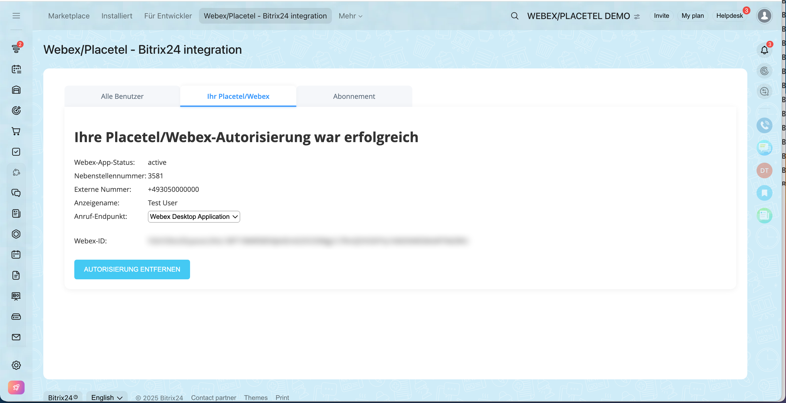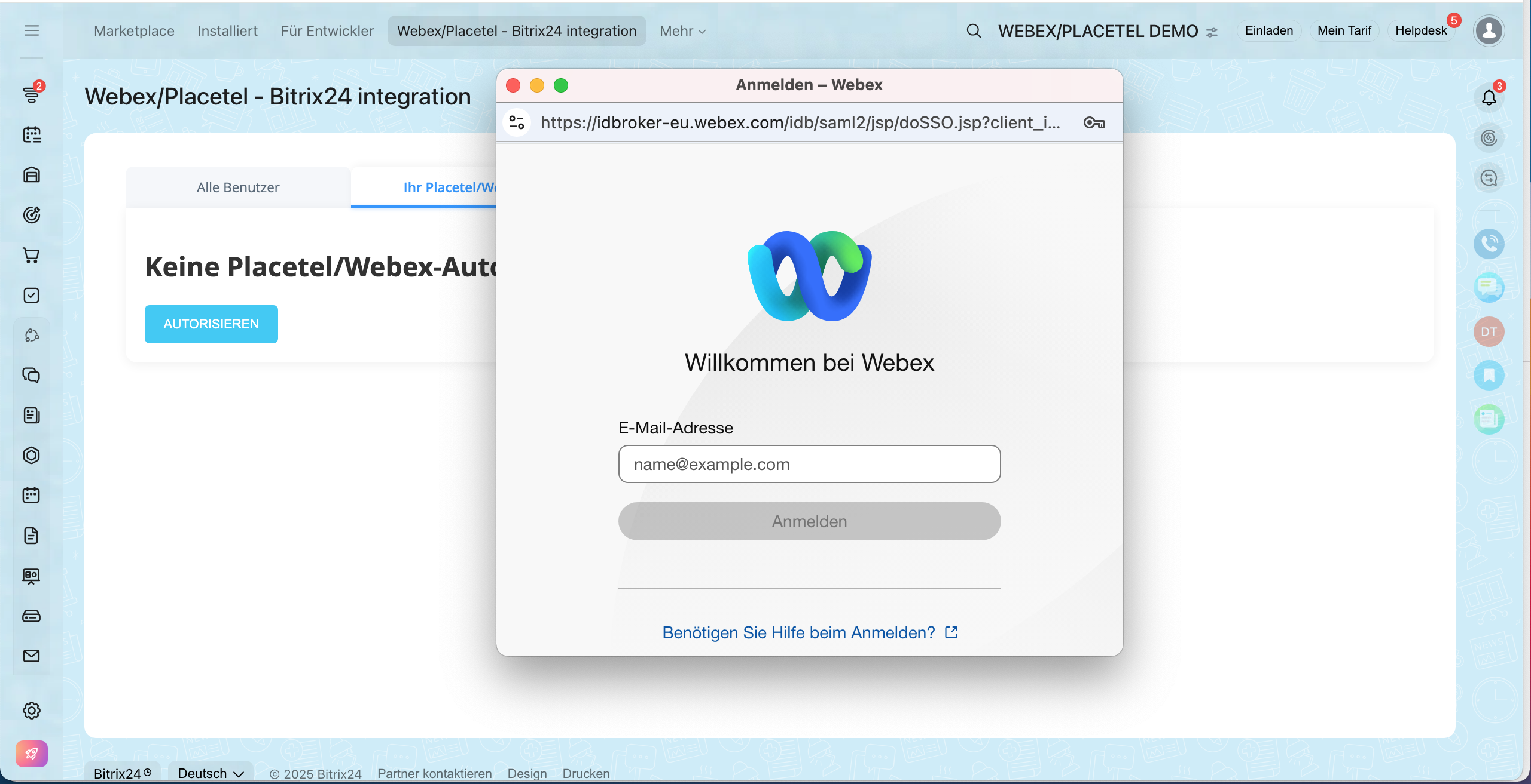 Telefonieren Sie direkt aus jedem Kontakt-, Lead- oder Deal-Datensatz in Bitrix24 mit Webex oder Placetel.