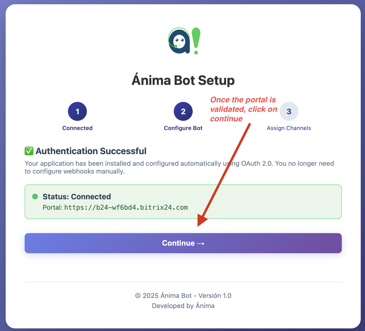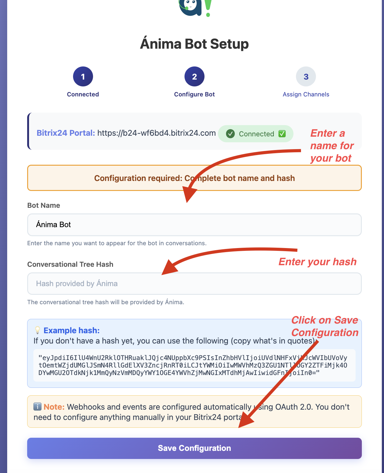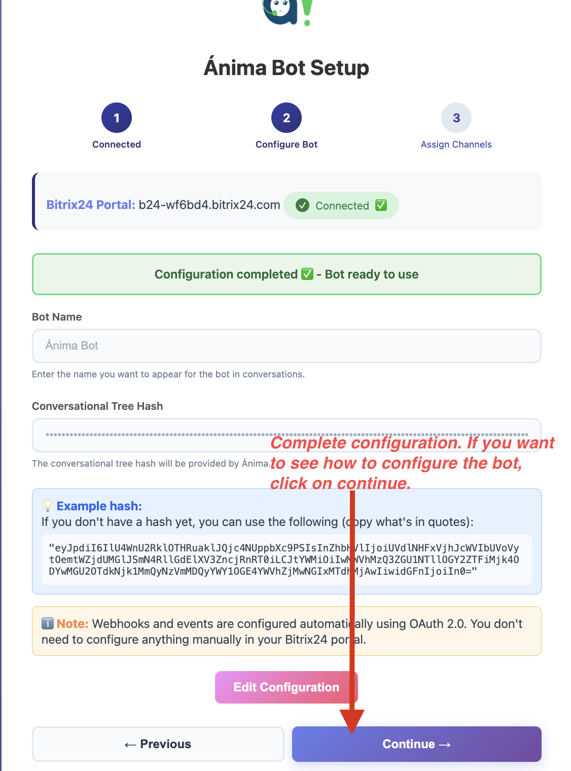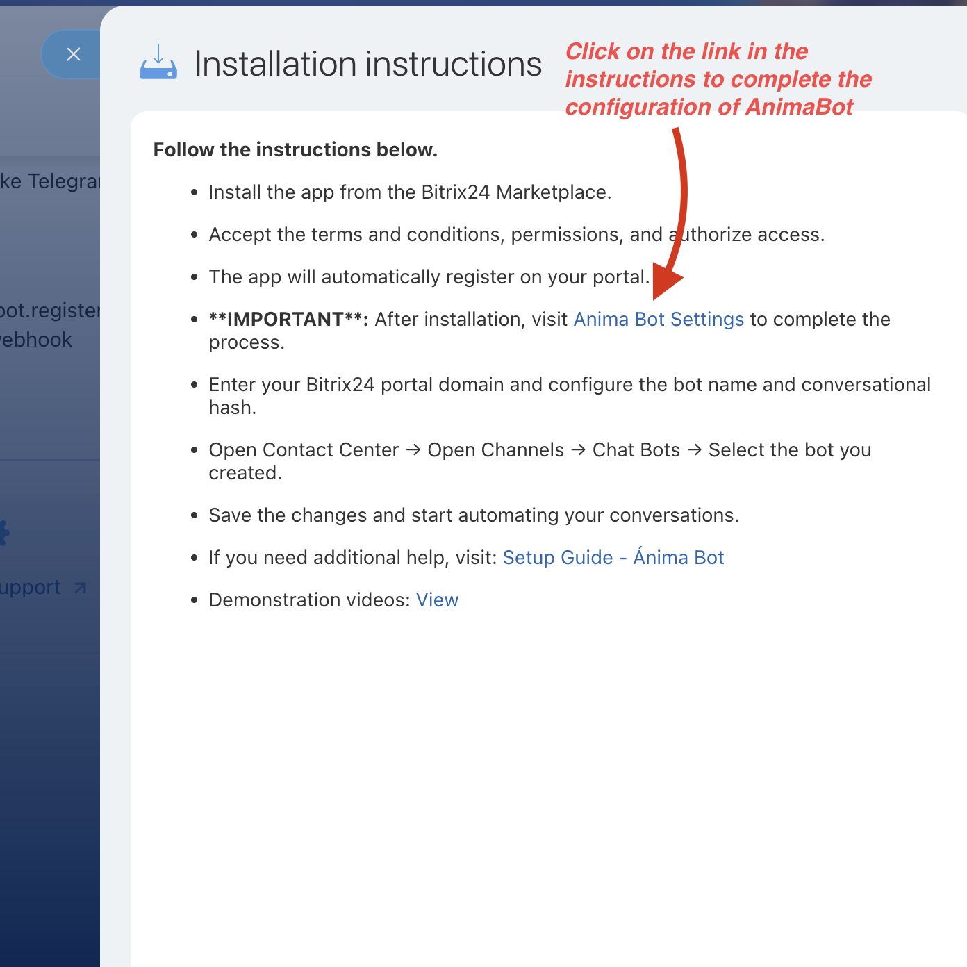 Connect Bitrix24-Ánima Bot to automate conversations.
