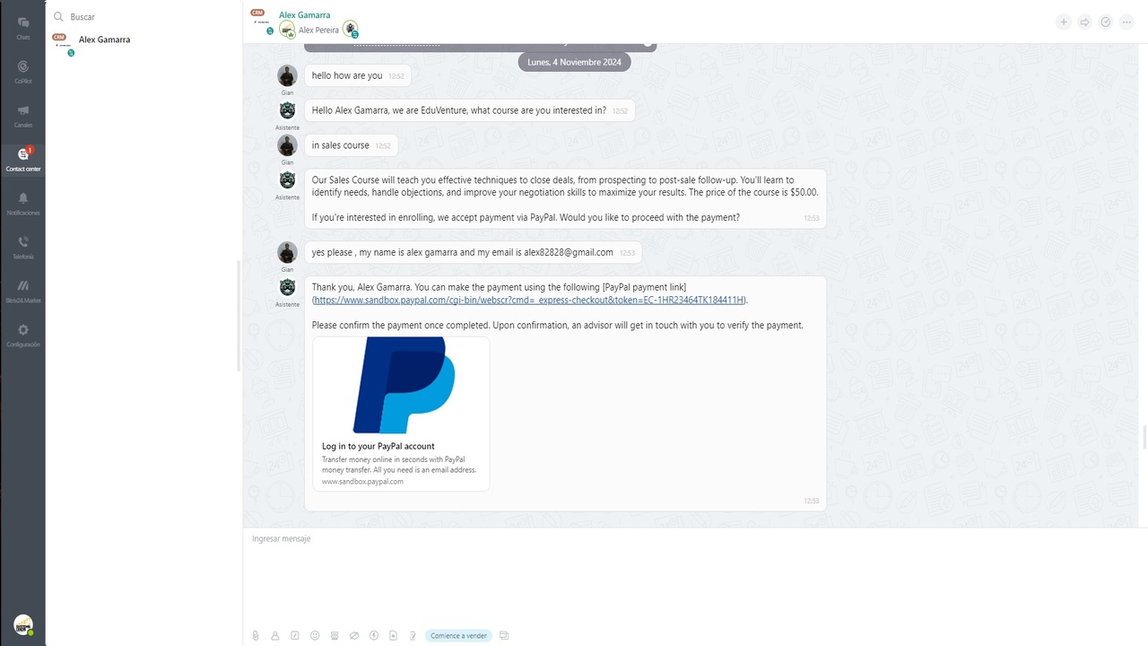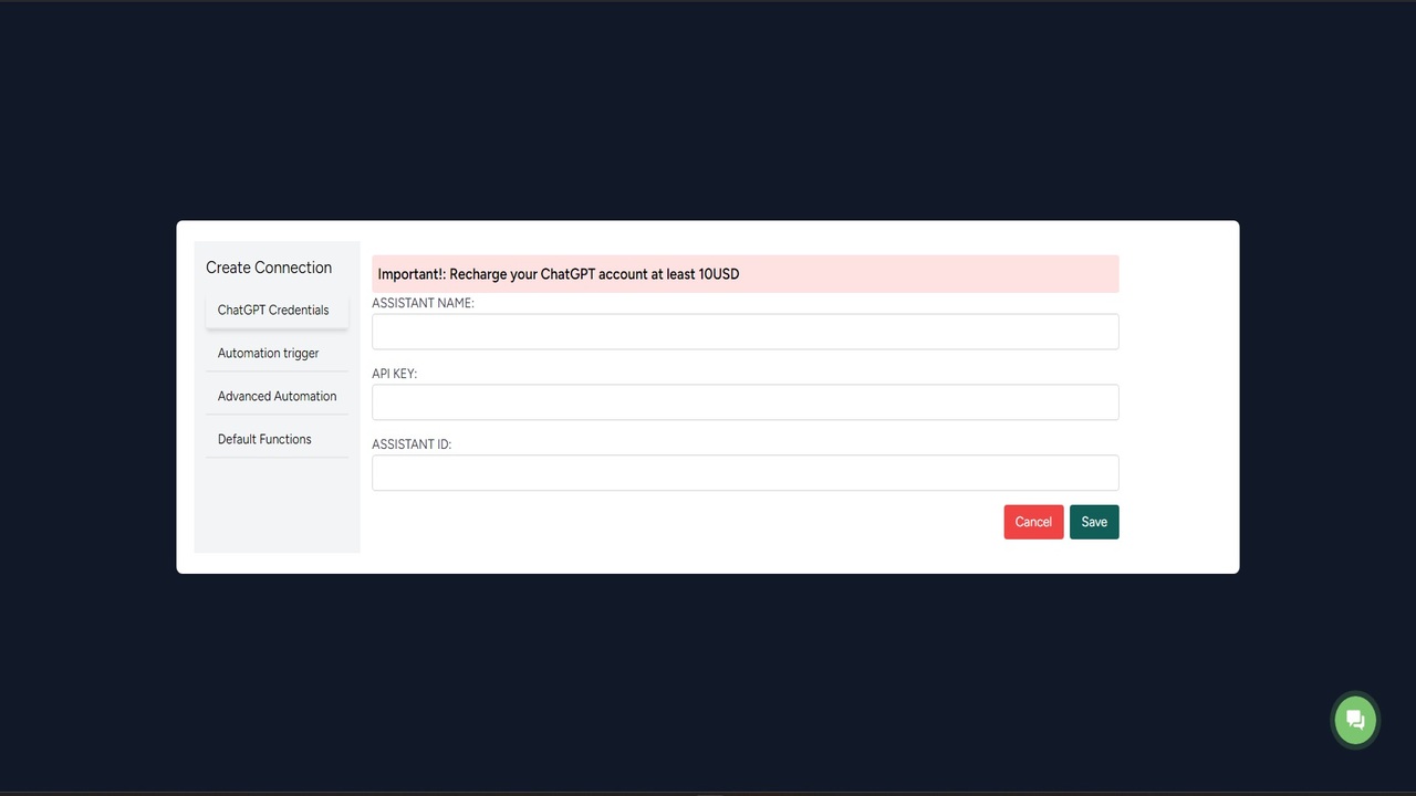 Integration des ChatGPT-Assistentenbots. Übernehmen Sie die Kontrolle über GPT! Geben Sie nicht mehr unnötig viel Geld für Bot-Antworten ausReagiert auf Text, Audio und Bilder. Interagiert auch mit Ihrem CRM und Ihren eigenen Automatisierungen.