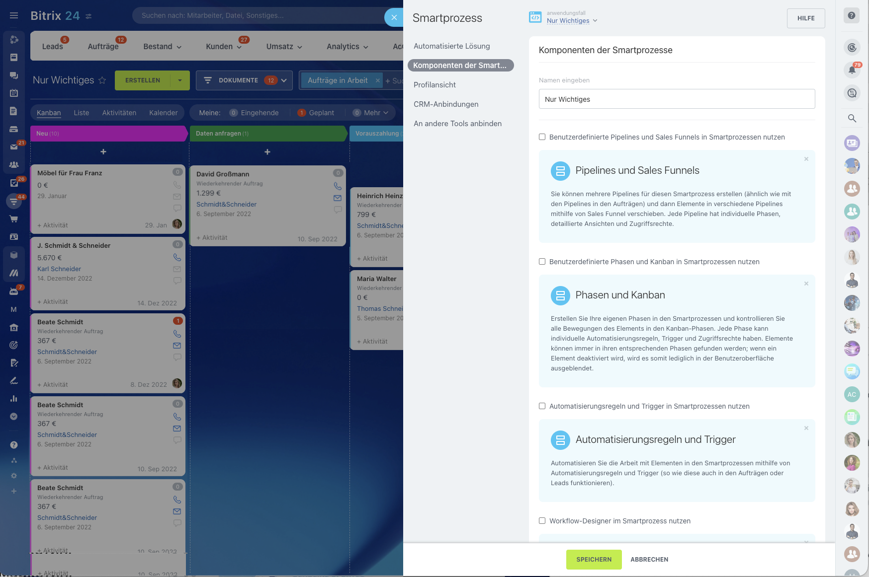 Erstellen Sie neue benutzerdefinierte CRM-Elemente, passen Sie sie an die Bedürfnisse Ihres Unternehmens an und automatisieren Sie sie mithilfe von Smartprozessen.