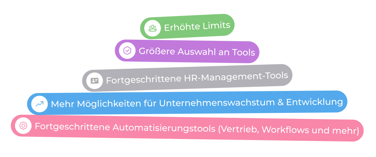 Nutzer, die vom kostenlosen Tarif zu einem kommerziellen Abonnement wechseln, nennen mehrere überzeugende Gründe, die sich hauptsächlich auf erweiterte Funktionalitäten und die Skalierbarkeit des Unternehmens beziehen. Der kostenlose Tarif bietet Basis-Tools aber wenn Unternehmen weiter wachsen, benötigen sie fortgeschrittenere Funktionen, um ihr Wachstum und ihre betrieblichen Anforderungen zu unterstützen.
