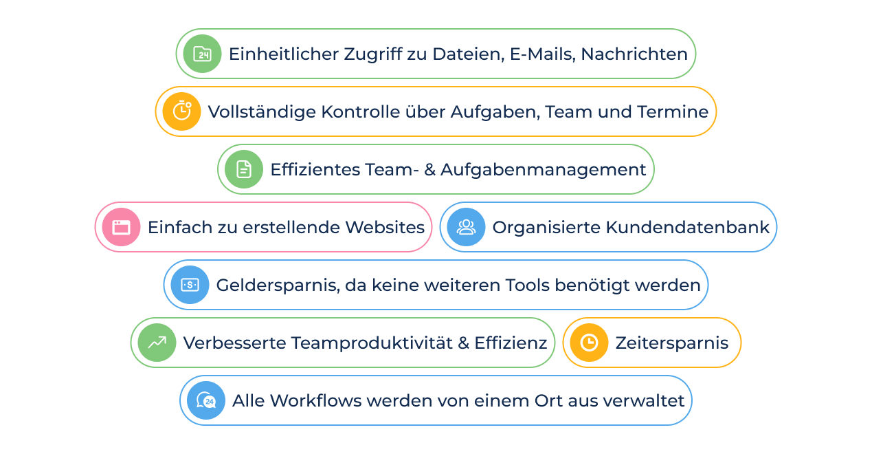 Durch die Integration mehrerer Tools innerhalb einer einzigen Plattform können Unternehmen Softwarekosten reduzieren und Kompatibilitätsprobleme zwischen verschiedenen Anwendungen bleiben aus. Dies führt zu einem kohärenteren, effizienteren Workflow, der sowohl den täglichen Betrieb als auch das langfristige Unternehmenswachstum unterstützt.