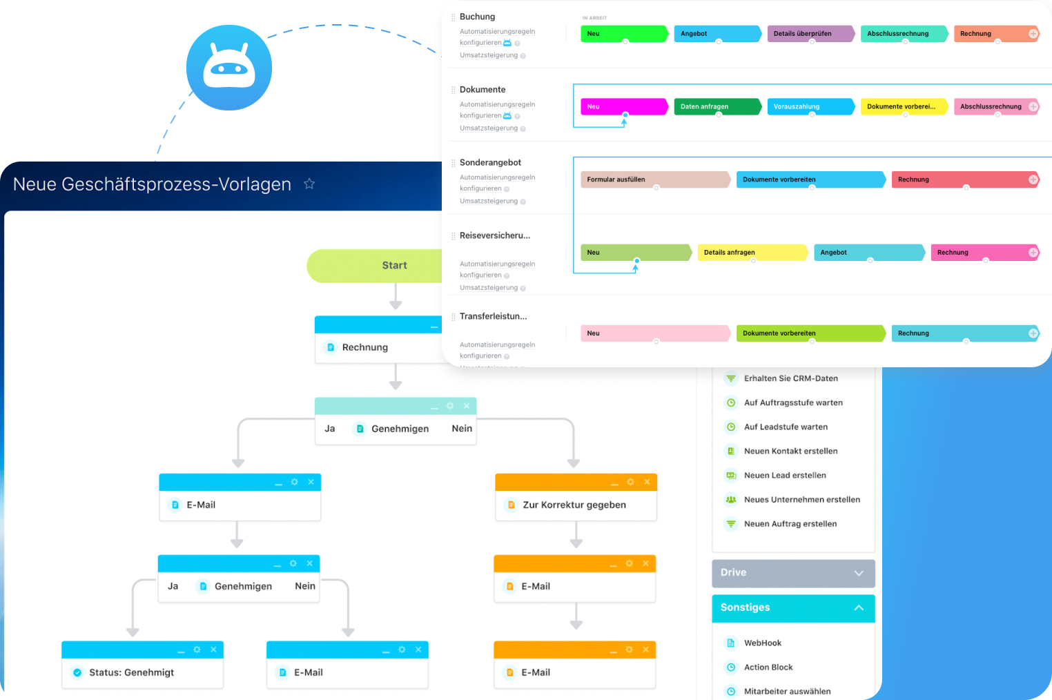 Ein komplettes Set von Tools zur Vertriebsautomatisierung für Ihr Unternehmen, einschließlich anpassbarer Regeln und Trigger, Workflow-Automatisierung, automatisierter Funnels, Integrationen mit Drittanbietern und mehr.