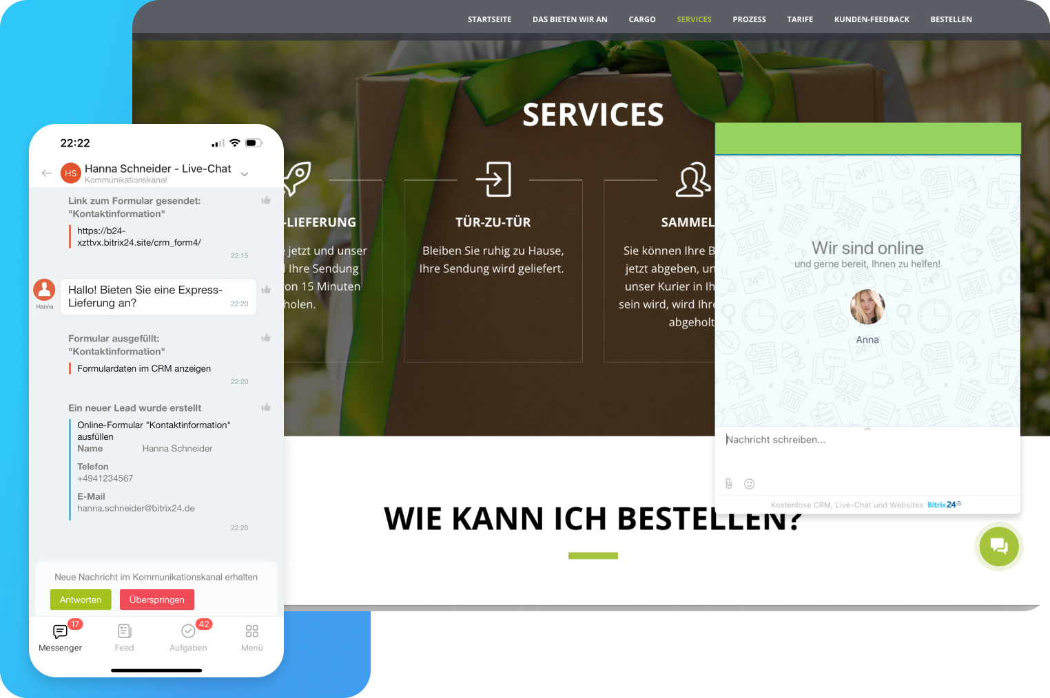 Verwalten Sie Ihren Vertrieb, Ihre Kunden und Ihr Team von Ihrem Smartphone aus mit der Bitrix24 mobilen App.