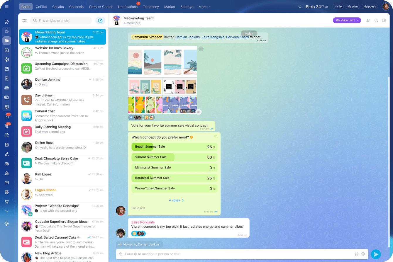 Bitrix24 Messenger sorgt für eine schnelle, produktive und sichere Kommunikation – vollständig integriert in unsere Kollaborationstools und das CRM.
