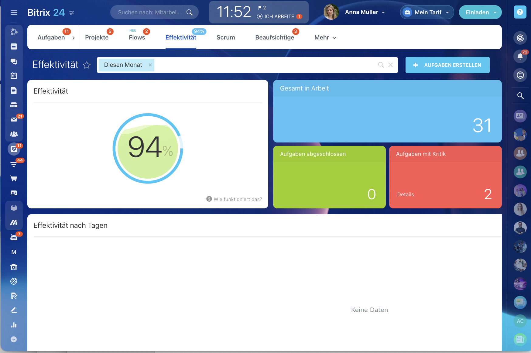 Bringen Sie die Effizienz Ihrer Teamarbeit auf die nächste Stufe und erreichen Sie mehr Ziele mit weniger Aufwand, indem Sie Mitarbeitereffizienz-Tools von Bitrix24 nutzen.