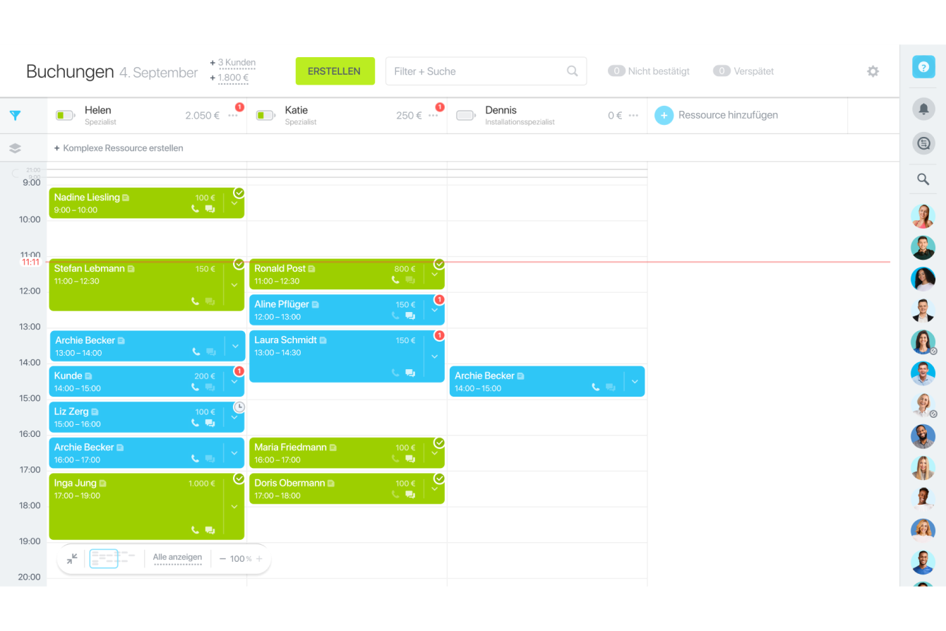 Buchungen helfen Ihnen, jedes Zeitfenster effektiv zu besetzen und sicherzustellen, dass Ihre Ressourcen im vollen Umfang genutzt werden. Mit Hilfe von benutzerdefinierten Onlineformularen zur Selbstbuchung können Ihre Kunden Termine planen und Ihren Kalender füllen, während die Ausfallzeit minimiert wird.