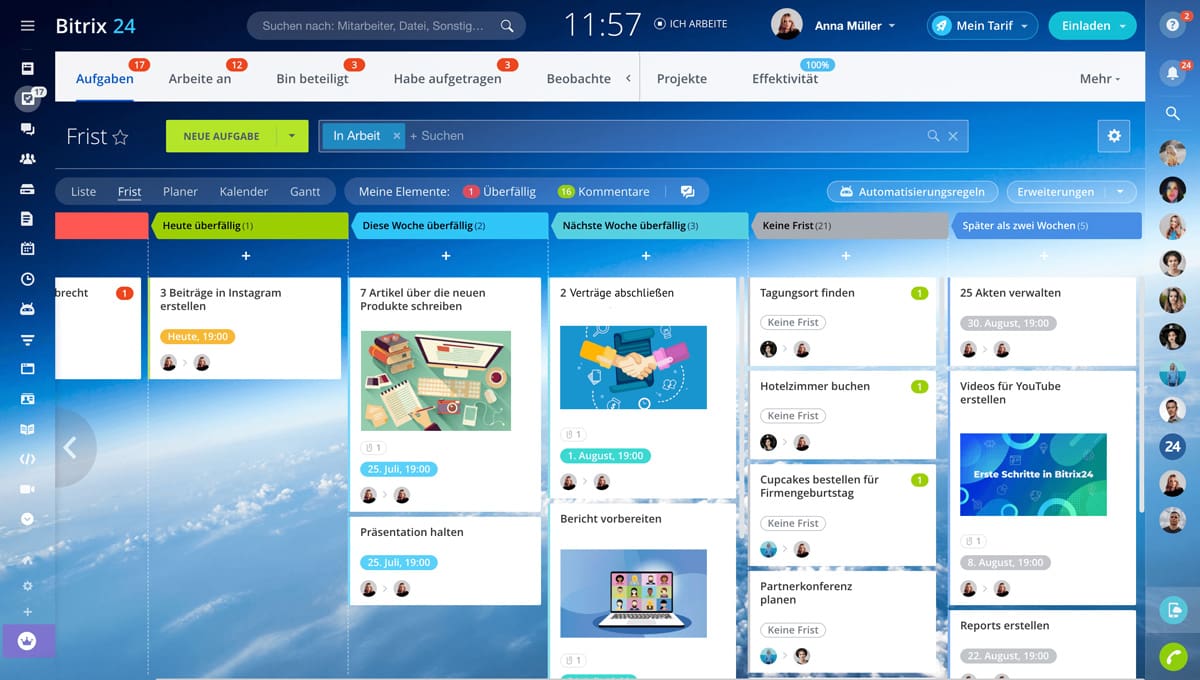 Effektive Arbeit jedes Unternehmens verlangt nützliche Tools für Projektmanagement. Suchen Sie gerade auch nach einem Kanban Board, um die Aufgaben in Ihrer Organisation effektiver zu verwalten? Schauen Sie sich das Kanban Board von Bitrix24 an.