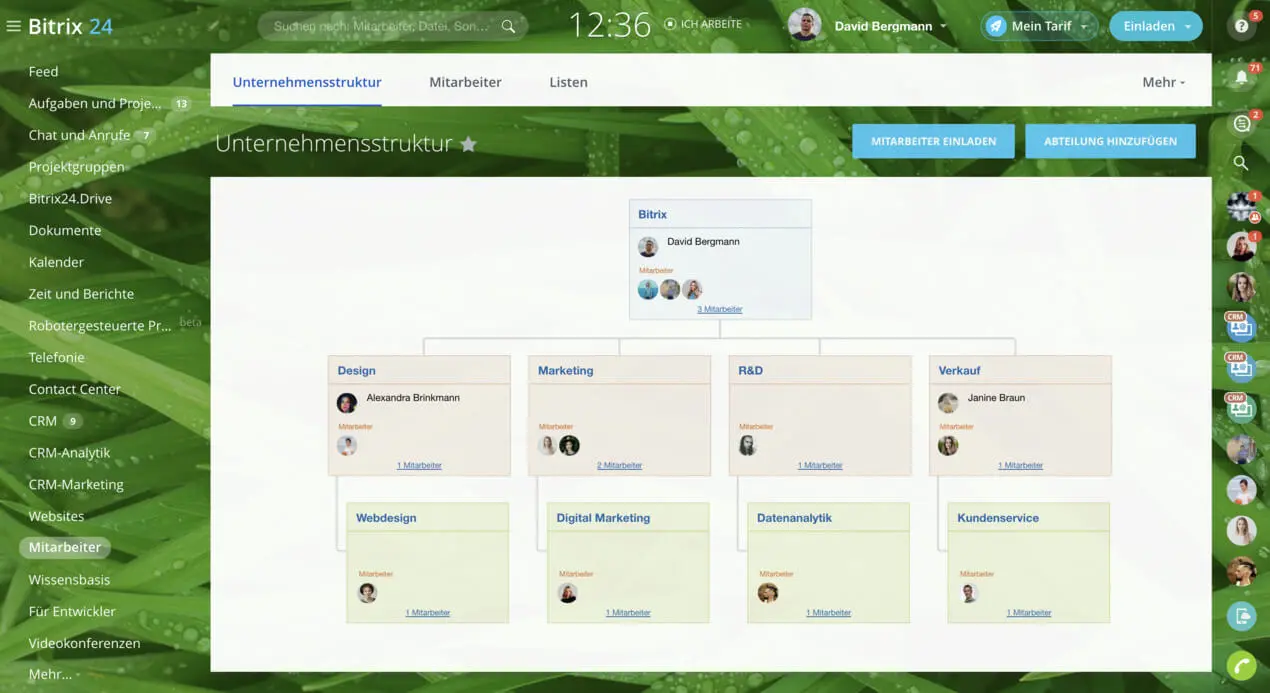 Sind Sie auf der Suche nach einer kostenlosen Zeiterfassung? Bitrix24 stellt Ihnen solche Möglichkeit zur Verfügung.
